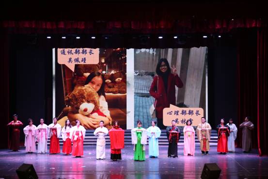 本次视听盛宴以“青春”为题,由“繁星、皎月、长空”三个篇章共同组成。梦幻的滑轮表演《Wait for you》,滑出精彩,滑出青春;婉转的音乐声中,民族舞《倾城之恋》开始舞动,火红霓裳、青白纸伞、甩袖藏舞,舞出民族韵味;辅导员唐爽、罗姝、胡雪梅、罗昭阳幽默风趣的《三句半》口才秀获得现场热烈的掌声;音乐剧《歌舞青春》展望梦想,意味深长,引学生共鸣。在“皎月”篇章中,斗乐《古鼓筝鸣》、爵士舞《CC girls》、小品《暴走大重师》、啦啦操《LA LA SHOTS》的精彩表演,更将现场气氛推至高潮。
