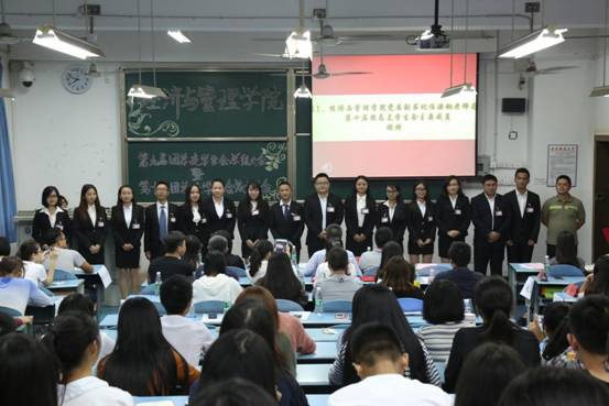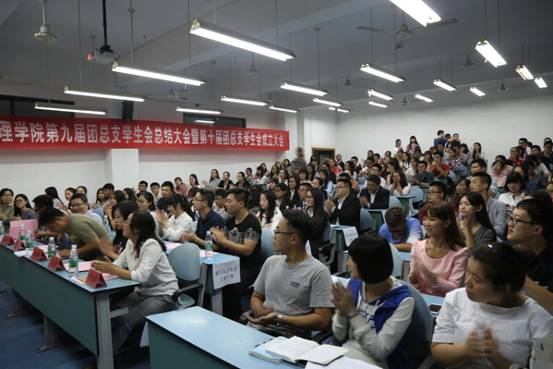 第九届团总支学生会总结大会暨第十届团总支学生会成立大会在弘德楼15401教室隆重举行。出席此次大会的有院党委副书记任源钢、团总支书记朱旭森、辅导员胡雪梅、唐爽和罗昭阳以及来自兄弟学院的优秀学生代表们。