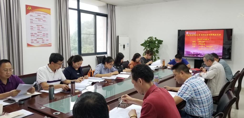 924日下午和晚上,学院党委理论学习中心组在学院楼311会议室举行“不忘初心、牢记使命”主题教育专题学习会,学习《习近平总书记在中央政治局第十五次集体学习时的重要讲话》《习近平总书记在2019年秋学期中央党校(国家行政学院)中青年干部培训班开班式上的重要讲话》。学院党委委员、纪委委员、全体支部书记等党委理论学习中心组成员参加会议。会前,学院党委印发了相关学习资料,与会人员提前自学,并撰写了发言提纲。