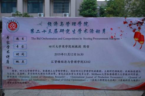 X102举行,出席本次讲座的专家是四川大学商学院副教授陈哲,讲座的题目为”The BidOrchestration and Competitions in Scoring Procurement Auctions”。成人无码