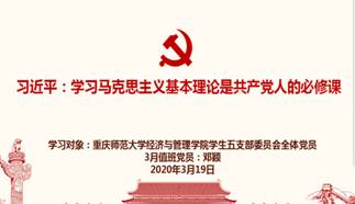 1、2月和3月,学院教工党支部积极开展线上组织生活,通过导背景、导结构、导重点、导内容、导思想的“五导”学习模式,组织广大教职工利用QQ等在线平台自学相关学习文件、分享学习心得体会、结合自身专业背景开展深入讨论。如行政支部在3月底“坚定理想信念、永葆政治本色”的主题当日活动中,黄浩、邱旭两位同志作为本次导学党员,向支部全体党员分享了疫情防控中的先进人物先进事迹,通过对先进人物事迹的学习,引导党员们深入思考本次主题教育的本质。