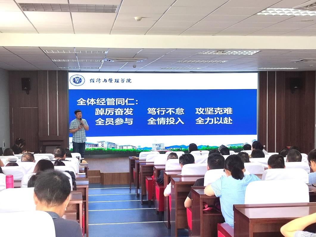 本次活动共分为三个部分。首先,党委副书记李青松传达学校2022年就业推进工作会议精神,进一步强化思想认识,强调贯彻落实就业工作“一把手工程”;其次,李青松副书记对学校整体就业情况进行通报,并简要汇报了学院2022届毕业生目前去向落实情况。随后,他通过对近三年学院就业情况分析、总结,强调全院教师要达成共识,统筹策划、聚焦发力,并从“科学研判就业新形态、用好就业新政策、拓展就业新渠道”等方面布置下一步就业工作安排;最后,李青松副书记肯定目前学院就业推进工作取得的阶段性成果,但也提出许多举措仍需在实践中不断完善,并发出踔厉奋发、笃行不怠、攻坚克难的号召。至此,本次活动圆满结束。