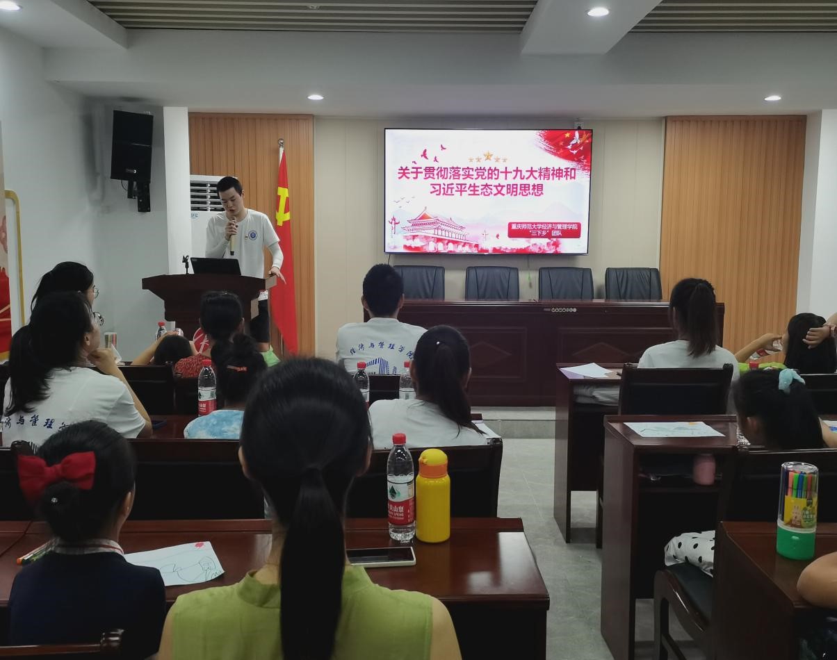“扬振兴梦想,展青年担当”乡村振兴实践团于重庆市高新区虎溪街道学智社区开展“习近平生态文明思想”宣讲会。学生党员王建雄就习近平生态文明思想从“为什么建设生态文明”“建设什么样的生态文明”“怎样建设生态文明”三个方面进行宣讲,准确把握思想核心要点,号召大家矢志不渝地做习近平生态文明思想的坚定信仰者、忠实践行者、不懈奋斗者。