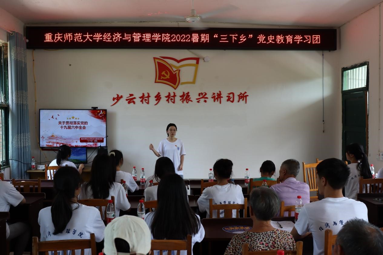 “红色铜梁旅,传承革命魂”党史学习教育团、“扬振兴梦想,展青年担当”乡村振兴实践团先后赴重庆市永川区何埂镇、高新区虎溪街道学智社区、铜梁区少云镇少云村等地开展暑期“三下乡”社会实践活动。