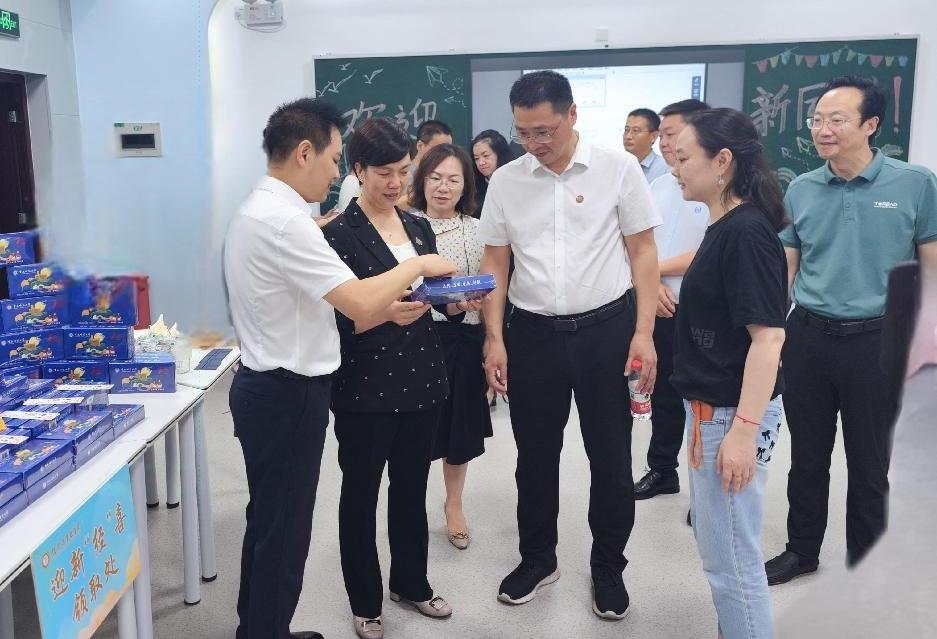 ,检查指导学院迎新工作,并与迎新志愿者和新生亲切交流。