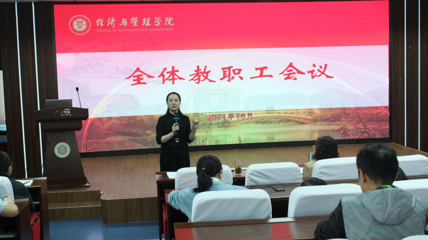 教职工会议在求是楼517顺利召开。党委书记钟敏、执行院长郑景丽、党委副书记李青松、副院长段俊及成人无码