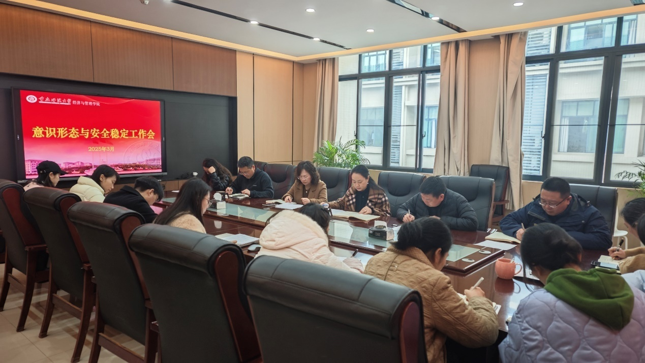 2025年3月10日,学院召开意识形态与安全稳定工作例会,部署新学期学院意识形态与安全管理工作。学院党委书记钟敏、执行院长郑景丽及全体科级以上干部、系主任、党支部书记、全体辅导员参会,会议由钟敏书记主持。