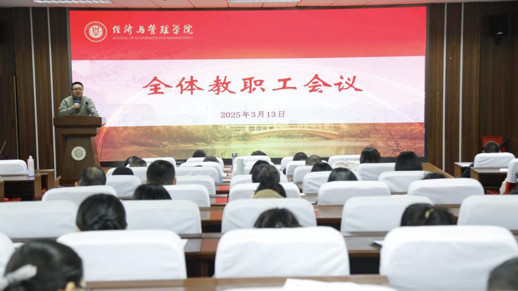 召开全体教职工会议,学院党委书记钟敏、执行院长郑景丽、党委副书记李青松、副院长陈宇科、副院长段俊,及全体教职工出席会议。