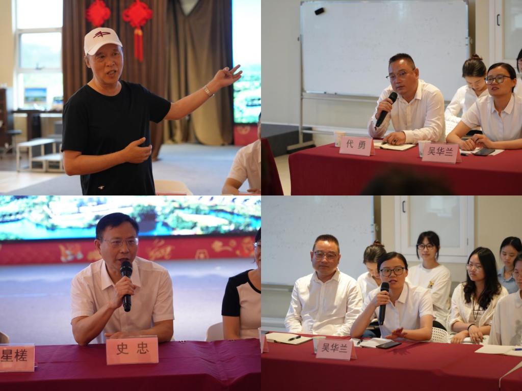 美术学院退休教授陈星槎、农业与物业负责人代勇、大健康运营产业负责人吴华兰与学生们进行了热切交流。