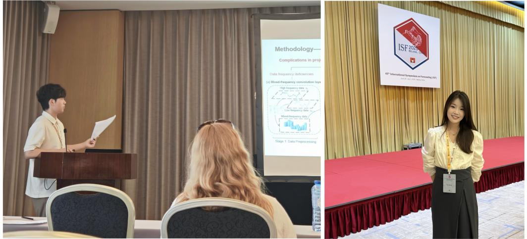 2023级数量经济学研究生吴坚、2024级数量经济学研究生张妮,在导师王现宁副教授的带领下,赴北京参加第45届国际预测大会(ISF 2025)。他们在此次国际预测科学领域的重要学术会议中进行学术汇报,积极参与学术交流活动,充分展现出重师学子的专业素养与精神风貌。