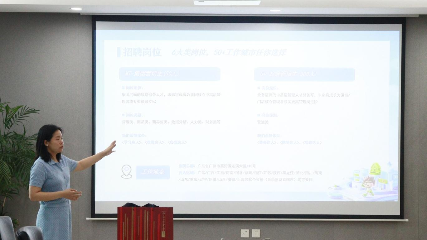 宣讲会上,易秋萍从“如何看待行业”、“如何看待企业”、“如何选择自己合适的岗位”三个问题出发,深入浅出地向同学们剖析了医药行业的广阔前景。她不仅阐述了公司在品牌建设方面的卓越成就以及独具特色的成人无码,还细致入微地介绍了当前招募的岗位详情、系统化的职工培养计划以及优渥的薪资福利待遇体系,为在场的每一位同学勾勒出了一幅全面而生动的职业发展蓝图,让大家对这一领域有了更为深刻和全面的认识。