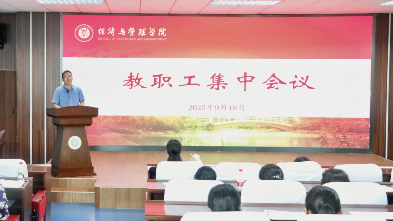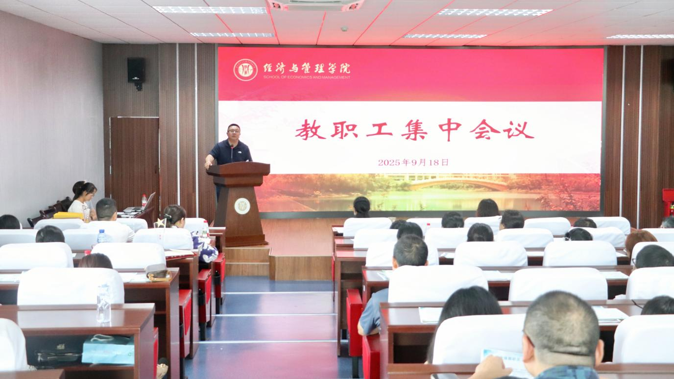 在求是楼517会议室召开全体教职工大会。学院党委书记钟敏、执行院长郑景丽、党委副书记李青松,副院长陈宇科、副院长段俊,及全体教职工参会。