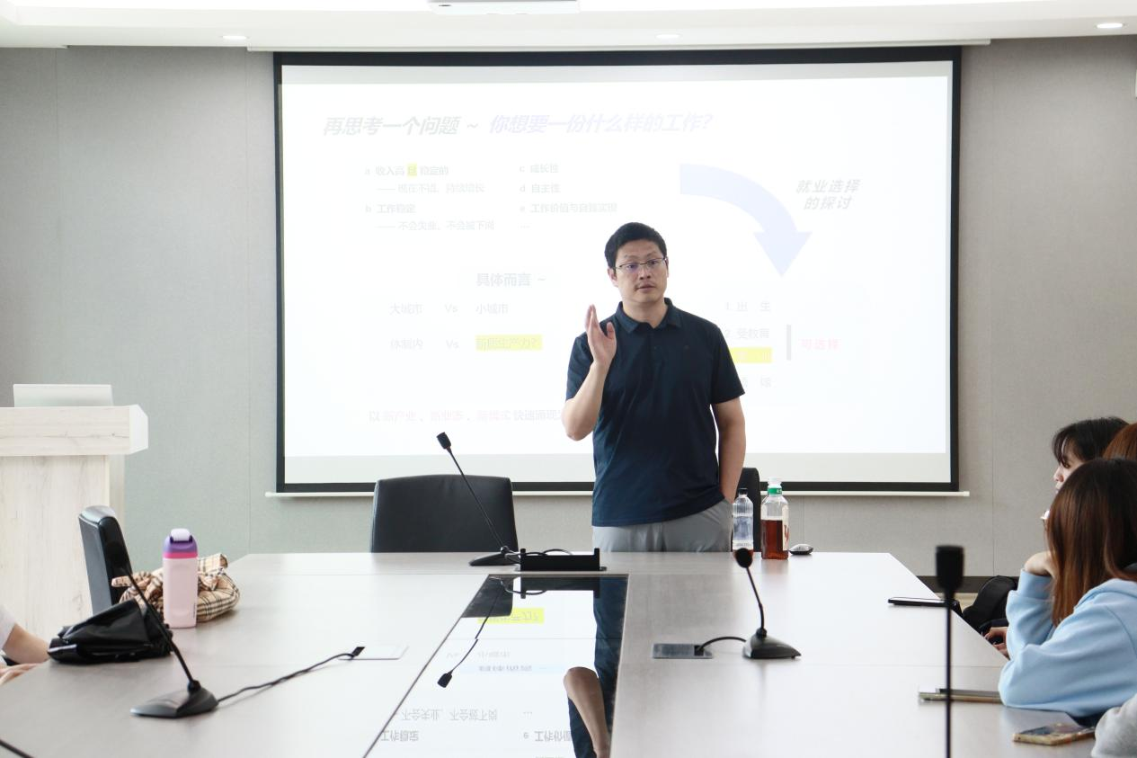 宣讲会上,翁中杰引导学生思考职业定位,探讨在当代就业环境中如何平衡收入稳定、成长空间与自我价值实现。他详细介绍了企业在咨询服务领域中,将专业咨询师引入私人金融服务领域,为客户提供定制化解决方这一的创新模式,使大家对这一领域有了更为深刻和全面的认识。针对应届生发展需求,他重点讲解了公司推出的“种子计划”,旨在通过建立管培生与实习生的双轨培养机制,搭建系统化职业发展平台,为行业输送高质量人才,这为在场的毕业生们提供了更多方向的职业选择。