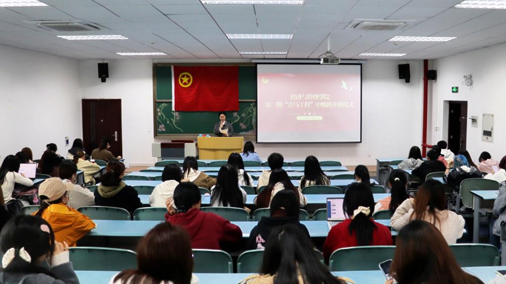 于求是楼321举行第三期“青马工程”中级班开班仪式。学院团委书记兼学工办主任张莉,第二期青马中级班优秀学员代表及第三期青马中级班全体学员参会。