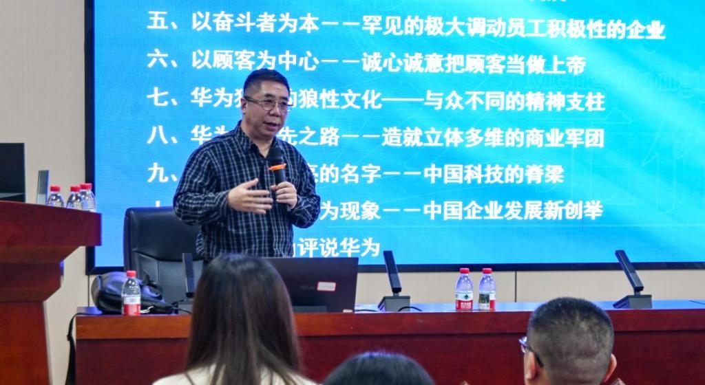 最后,孟教授孟教授勉励同学们,从华为的发展历程中汲取智慧,将“聚焦目标、共享成果、坚韧不拔”的文化精神融入个人成长与职业实践,为中国经济高质量发展贡献力量。