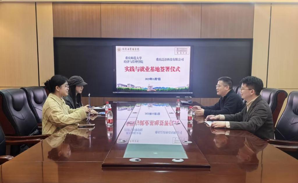与重庆泛语科技有限公司举行了实践与就业基地签约仪式。学院副院长段俊、重庆泛语科技有限公司人事代表钱坤、郑含玉、学院辅导员张源出席签署仪式。