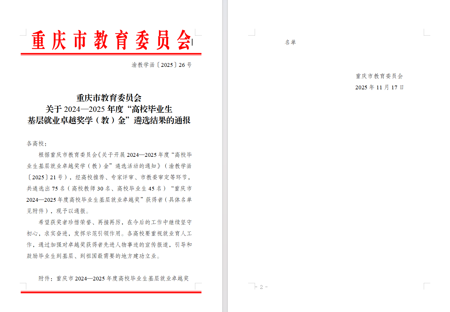 近日,重庆市教育委员会公布了2024-2025年度“高校毕业生基层就业卓越奖学(教)金”评选结果,成人无码