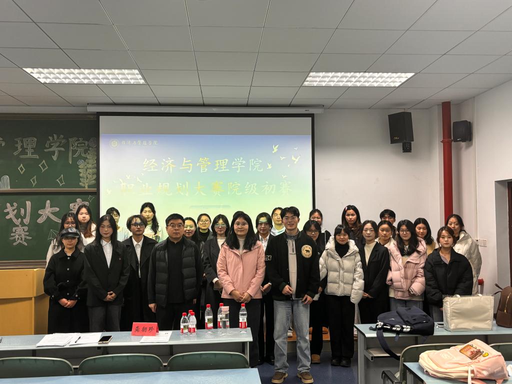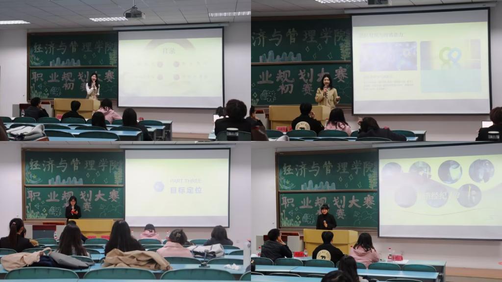 于求是楼321教室举办职业生涯规划大赛院级选拔赛。本次比赛邀请工商管理系教师岳奥博、辅导员龚朝珍、赵丙辰担任评委,共22名选手入围比赛。