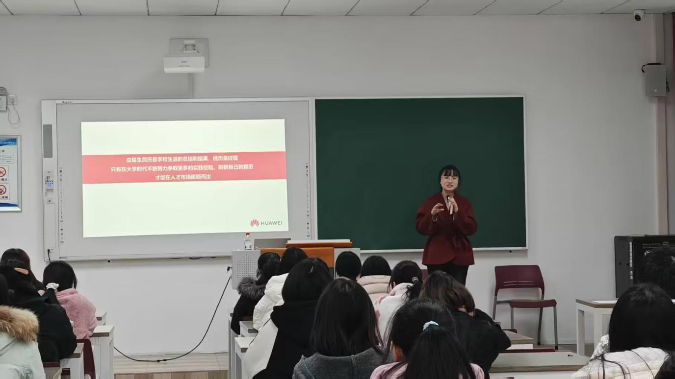 于求是楼220开展简历制作和面试指导培训会。本次活动邀请深圳慧通商务有限公司校招负责人杨丹丹主讲,吸引了70余学生参会。