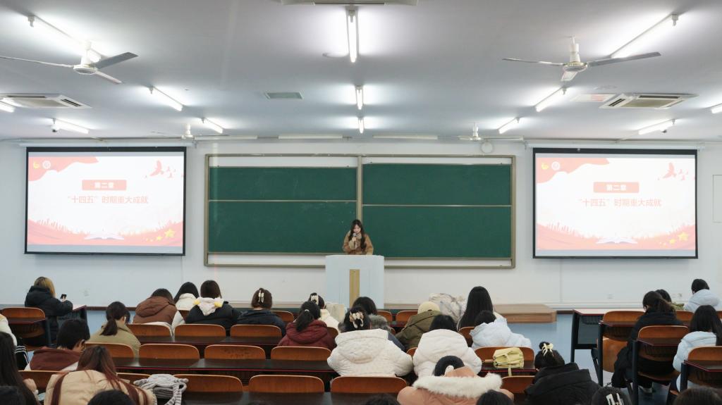 郭珊佑围绕党的二十届四中全会的核心要义、精神实质和实践要求,结合高校学生工作实际与青年成长发展需求,从全会召开的时代背景、重要意义出发,对全会提出的新思想、新论断、新部署进行系统解读,重点阐释了全会关于青年工作的相关要求,明确青年一代在推进国家治理体系和治理能力现代化进程中的使命责任。