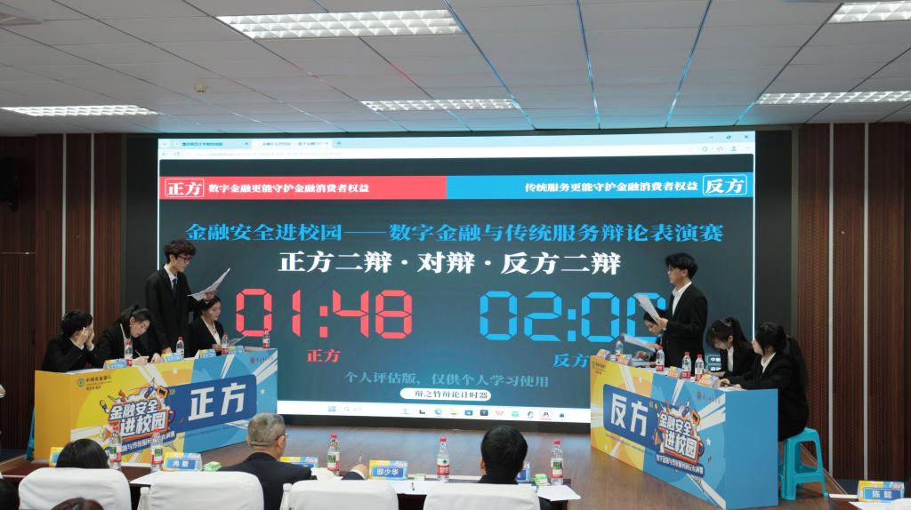 本次辩论赛围绕“数字金融与传统服务,谁更能守护消费者权益”展开。正方由学校辩论队组成,反方由成人无码