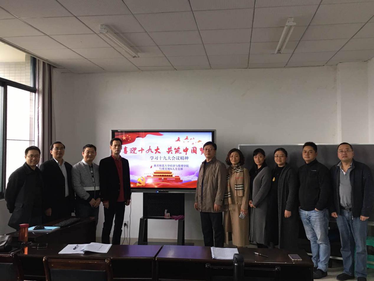 按照党支部主题党日活动计划,首先支部全体党员认真学习和领会党的十九大精神和决议,徐孝勇老师向与会党员介绍了带领亿万人民走向民族伟大复兴中国梦的新时代“梦之队”履历情况,周鹏飞老师介绍了党的十九大精神的主题和新时代坚持和发展中国特色社会主义的基本方略等会议精神。人力支部书记胡兵老师给大家做了“守纪律讲规矩,做政治上的明白人”的主题讲座,从深刻认识守纪律讲规矩的重大意义,再到解说《中国共产党纪律处分条例》的“严”和“新”之处,用大量的案例阐释了政治纪律、组织纪律、廉洁纪律、群众纪律、工作纪律和生活纪律的负面清单,最后的总结和反思指出了《廉洁自律准则》和《中国共产党纪律处分条例》为全面从严治党树立了道德高线和纪律底线,全体党员要强化政治意识,要“心中有党”;强化廉洁意识,要“心中有戒”;强化核心意识,要“令行禁止”;强化责任意识,要“心中有责”。随后,党员同志们纷纷发言,畅谈党的十九大精神报告的学习体会。吴博老师谈到“十个方面的历史成就”,感慨我们国家经济建设取得的巨大成就和人民生活的不断改善,陈绍友老师对“两个重大判断”进行了阐释,并结合经济学、社会学和政治学知识谈到了我国社会主要矛盾的转化问题。行政支部书记黄浩老师结合教务工作谈了学生教育和培养的相关理念,学院分党委任源钢副书记对“精准扶贫”和“全面建成小康社会”两个主题和与会老师进行了充分热烈的探讨。