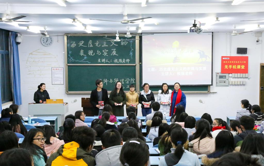 为更好地引领青马班学员和学生党员树立正确的政治观,不断提高思想政治觉悟,20161215日晚,成人无码 党委书记税强于弘德楼15203教室为成人无码 青马班学员和学生党员讲授党课——《历史虚无主义的表现、实质与危害》。本次讲课由成人无码 青马班班主任刘敏同学主持。