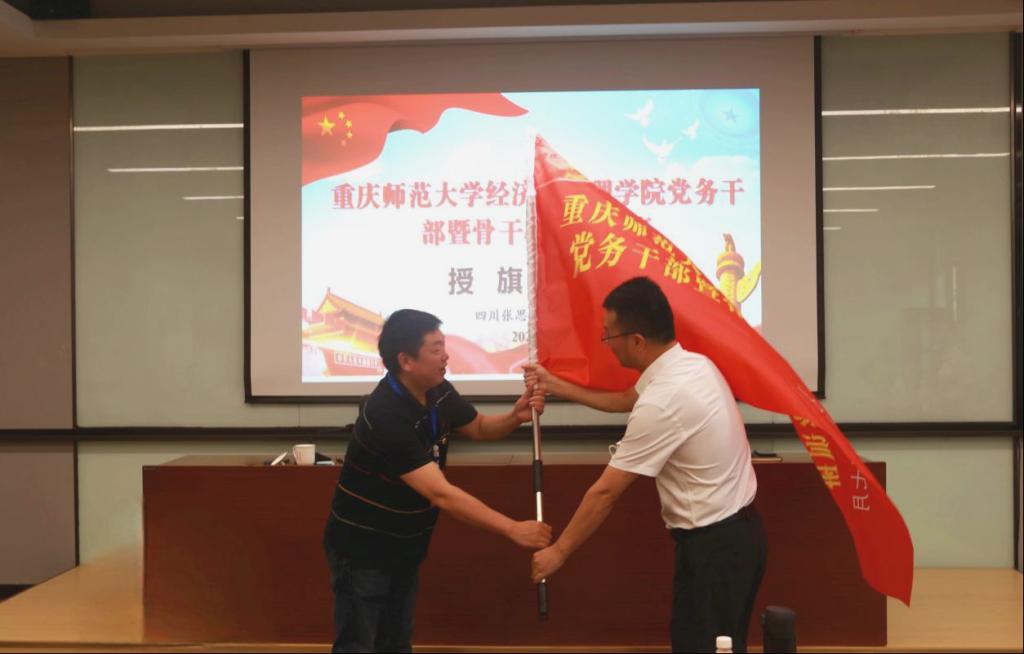 最后,四川张思德干部学院党群部主任宇伟忠为培训班副班长、学院党委副书记李青松授班旗。