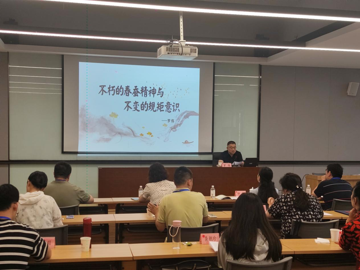 在接下来的培训中,中共南充市纪委监委常委罗伟为培训班成员带来了题为《春蚕精神与规矩意识》的专题讲座。罗常委从师道风范与春蚕精神入手,引经据典,深入阐述了教师教书育人社会责任与严明规矩意识之间的内在逻辑与现实需求,引起了在场学员的广泛共鸣。