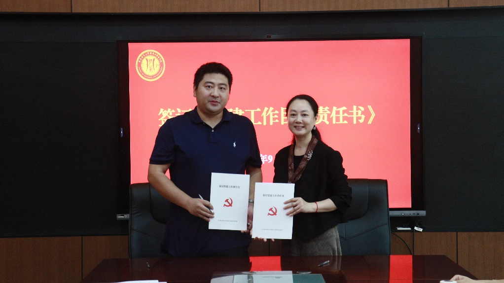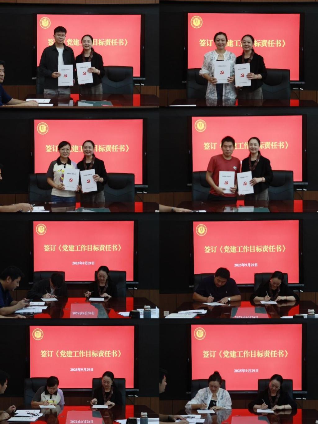 在求是楼429会议室举行2025-2026学年基层党建目标责任书签订仪式。学院党委书记钟敏、党委副书记执行院长郑景丽,全体党委委员、纪委委员,各基层党支部书记参会。
