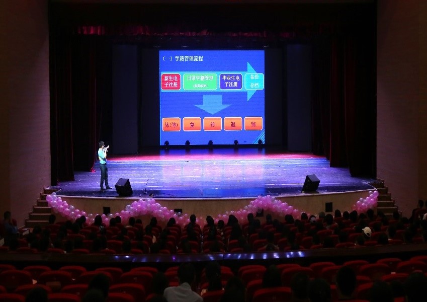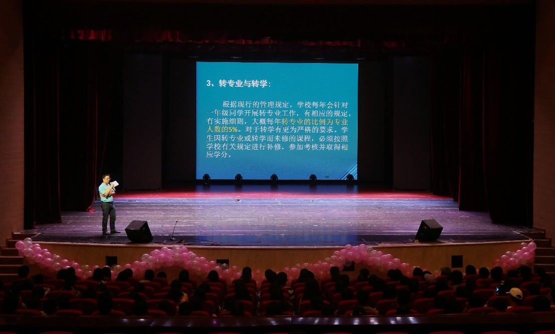 于9月13日下午四点半在校友会堂演出厅开展了针对2018级新生的“入学教育之学习与学籍管理教育讲座”,并由成人无码