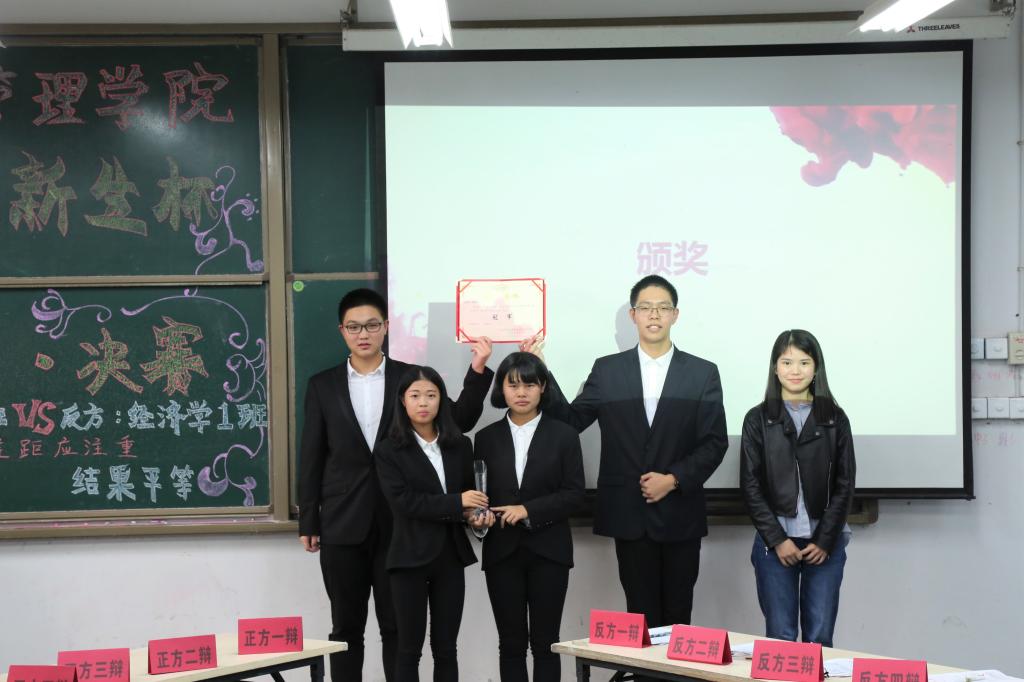首先双方立论,精确阐述己方观点及支撑理论,然后经过申论、前场小结两个环节后进入最精彩的自由辩论环节,双方辩手龙争虎斗、各出奇招,局势难解难分。随后进入结辩环节,正方认为缩短贫富差距在于每个人都应有平等的机会,重点阐述穷人自身抓住机会为之奋斗而摆脱贫困,反方更加追求结果平等,过程中先富带后富,富人精英掌握大部分财富与资源达到价值创造的最大化,最终以优良的社会环境让穷人走向富足。在双方精妙的结辩之后评委进行点评,指出辩手的优点与不足,辩手也在评委的点评中了解了更多辩论的技巧。双方观点虽有不同,却殊途同归,实现社会主义的终极目标——共同富裕,无论是机会平等还是结果平等都需要当代中国人不断地摸索与奋斗。最终主持人在辩手与观众热切的期待中宣布结果,反方经济学1班以良好的配合与个人发挥获得胜利,而正方一辩刘秋悦以缜密的逻辑与清晰的阐述赢得了“最佳辩手”奖项,观众以激烈的掌声示以祝贺。