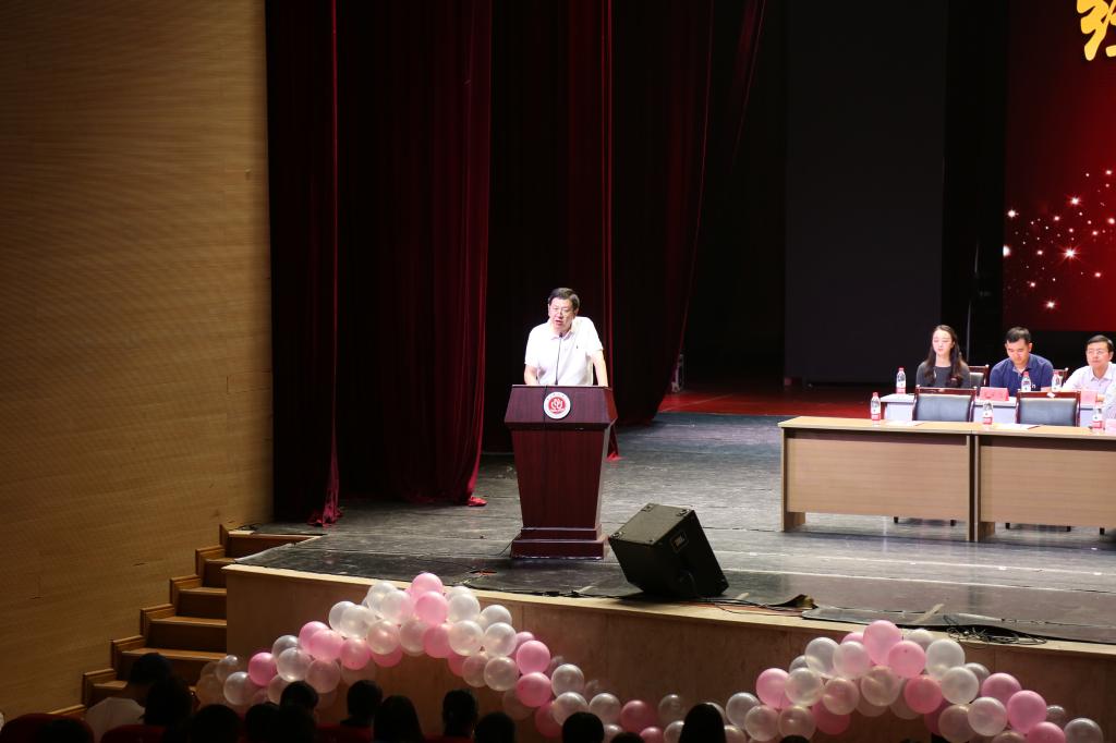 党委书记税强上台致辞。税书记首先表达了对17级充满希望、饱含热情的八方学子的热烈欢迎与亲切问候,是他们的到来让学院更加朝气蓬勃,青春洋溢。税书记讲到,每位新生都应该有大胸怀、大追求,追求高尚之德行、独立之人格、博雅之学识、卓越之能力、坚韧之意志、责任之担当,而这也是大学教育的内涵和生命力。天高任鸟飞,海阔凭鱼跃。税书记还要求新生在大学里不仅要增加自己的知识储备,还要利用兴趣小组、知识竞赛等平台,多元展示自己,提升自己独立生活、自主选择的能力。