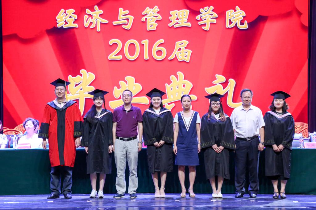 学位评定分委员会代表对全体2016届毕业生进行授位。教师代表罗富碧老师上台发言,希望2016届毕业生们能够在人生道路上走得更远。党委书记税强告诉同学们经管学院就是学子们的家,是学子们最坚强的后盾,同时也希望同学们能够常“回家”看看,与母校共同成长。毕业生也为学院送上精心准备的礼物——金牛鼎足,“金牛挥尾,前程似锦”表达了他们对学院的深切祝福。
