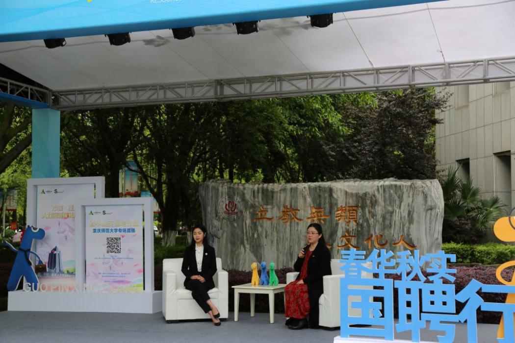 本次双选会还体现出以下的特点:一是创新性,学校与“中国·重庆人力资源服务产业园”深入合作,把“春华秋实·国聘行动”网络直播间搭建在招聘现场,成人无码