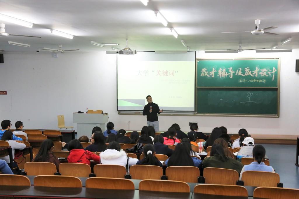 讲座围绕“大学生成才辅导及成才设计之路”展开,主要分为成才讲解和师生互动两大环节。讲座开始,任书记提出“为什么读大学”这一问题,引发同学们深思。接着,任书记从知识资本、人才与人材的概念、目标规划等方面做出讲解并列举相关事例。任书记强调,在成才之路上,首先要有目标,要有对未来的实质性规划。在师生互动环节中,任书记解答了如何管理时间、如何做职业生涯规划、如何就业、如何提升存在感等同学们较为关注的问题,尤其是在时间管理方面,任书记用生动有趣的“角色时间饼”提出合理安排时间的方法。最后,任书记总结,要想成才,关键在于学会自我调节,自我肯定,挖掘出自己的潜在价值,脚踏实地向目标前进。