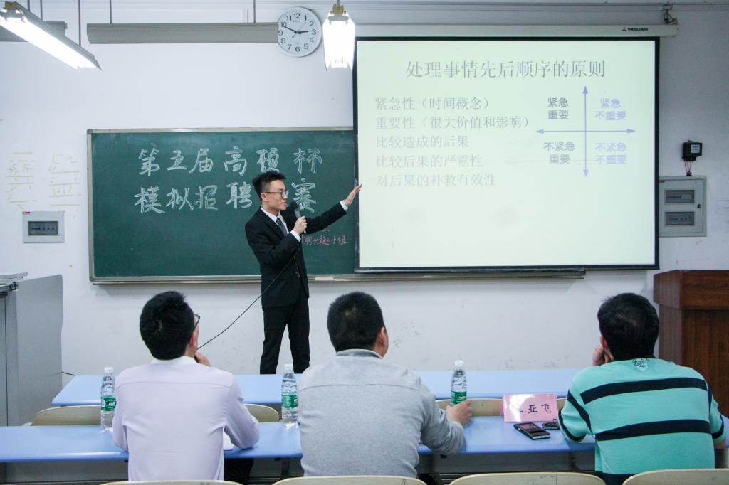 第五届“高顿杯”模拟招聘大赛于弘德楼13101教室顺利举行。大赛在模拟招聘兴趣小组指导老师吴博的指导下由社会实践协会、模拟招聘兴趣小组主办。高顿财经公司代表张宇、成人无码