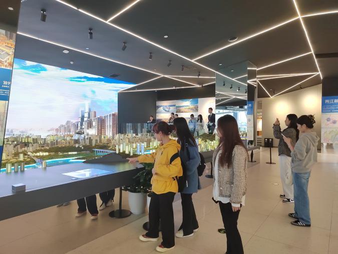 赏山城之美,立鸿鹄之志。学生们参观了“自然山水”、“历史人文”、“总体规划”、“城市更新”、“内陆开放高地”等8个主题展区,全方位、多维度了解认识了成渝大地的山川河岳、风土人情、文华渊薮、发展成就和未来规划等内容,进一步加深了对重庆市发展前景和文化魅力的了解体验;参观结束时,大家纷纷表示要将未来自身发展融入新时代、新征程、新重庆及成渝地区双城经济圈建设中,贡献自身的专业力量。