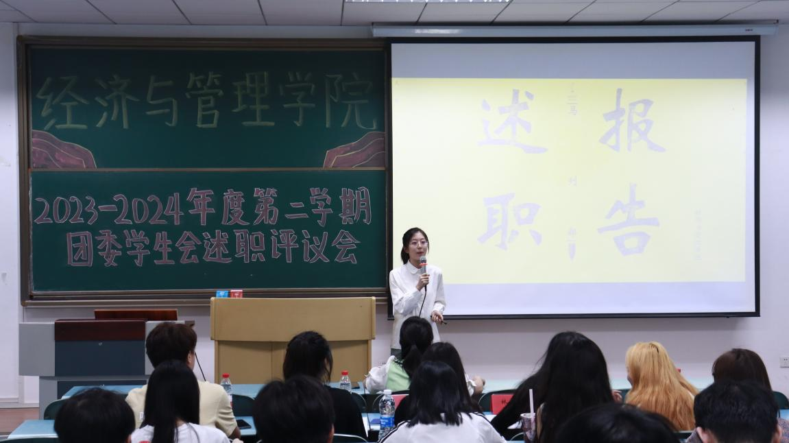 为进一步强化对学生组织工作的指导、管理和监督,提升学生干部的大局意识和服务意识,6月17日,成人无码 在求是楼321成功举办2023-2024学年第二学期团委学生会述职评议会。成人无码 团委书记兼学工办主任张莉老师、团委学生会代表、主席团成员以及各班评审代表共同参加了此次会议。