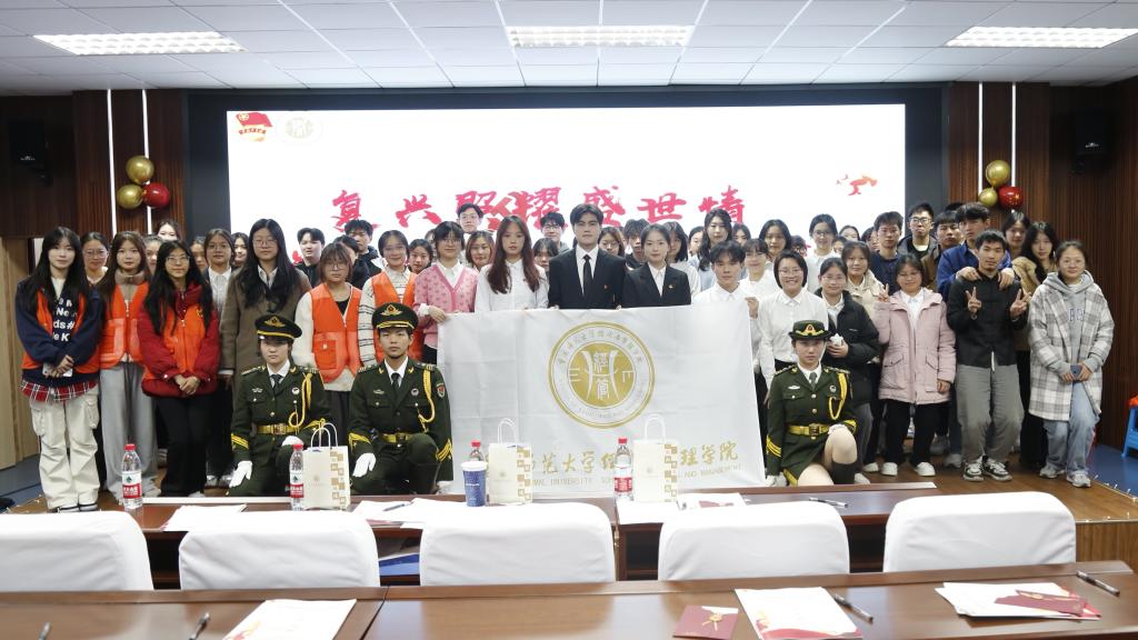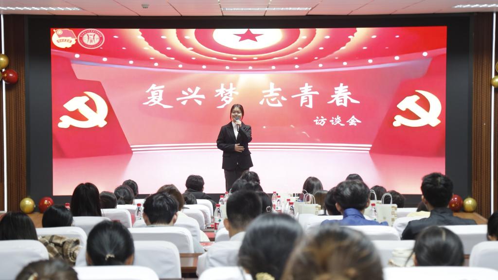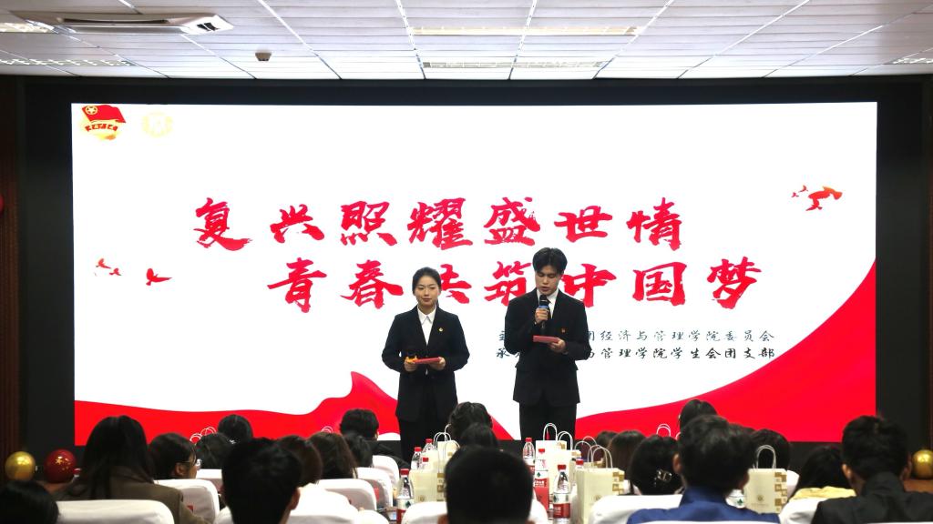 活动在全体成员共唱团歌中拉开序幕,并以新中国史为线索,以沉浸式访谈会为轴线贯穿全程,通过“记者”与“经管学子”的对话,揭开学子家中三代人为中华民族伟大复兴做出的重要贡献。