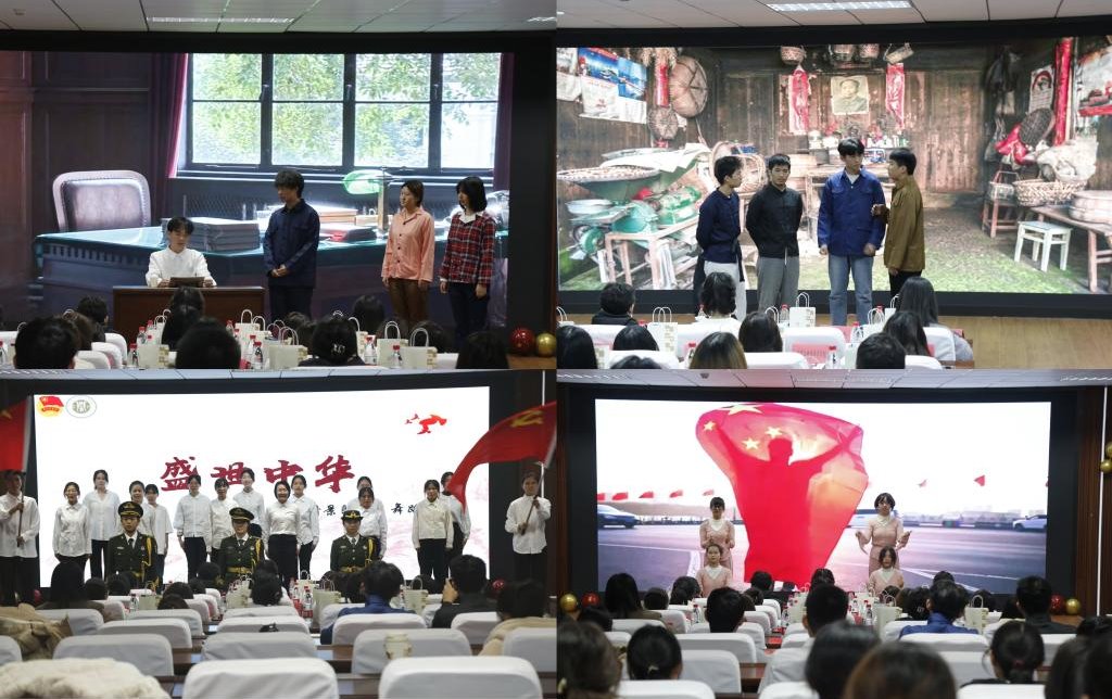 随后,活动进入了第一篇章“峥嵘岁月,改造启航”。通过情景剧《求索》的生动演绎,同学们仿佛穿越回那个激情燃烧的岁月,见证了工商业在社会主义改造中的辉煌成就,感受到了时代青年在改造中做出的努力与奉献。