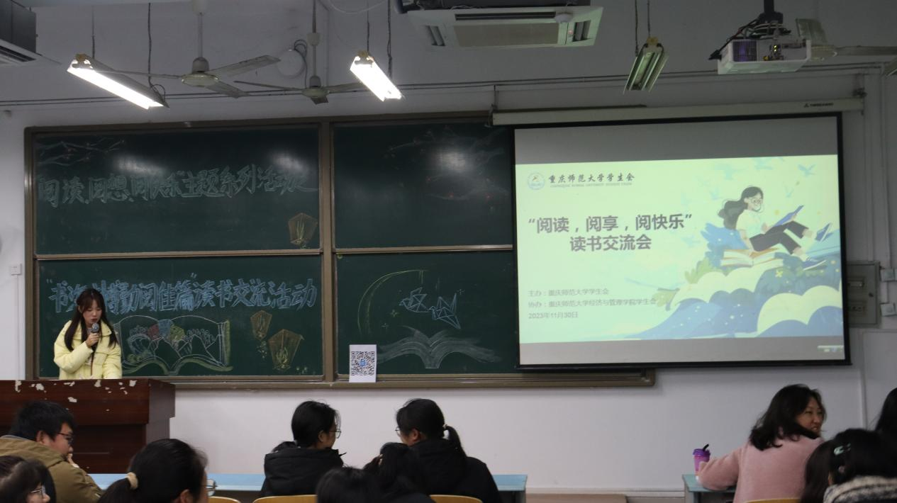 为让同学们体验阅读的乐趣,培养阅读的习惯,促进学生个性特长的和谐发展,2023年11月30日下午,由成人无码 学生会主办、成人无码 承办的“阅读,阅享,阅快乐”读书主题系列活动之“漫步书海,勤阅佳篇”读书交流活动在弘德楼15102顺利举办。本次活动由学院学习部主要负责人易春香主持,共150余名同学参与。