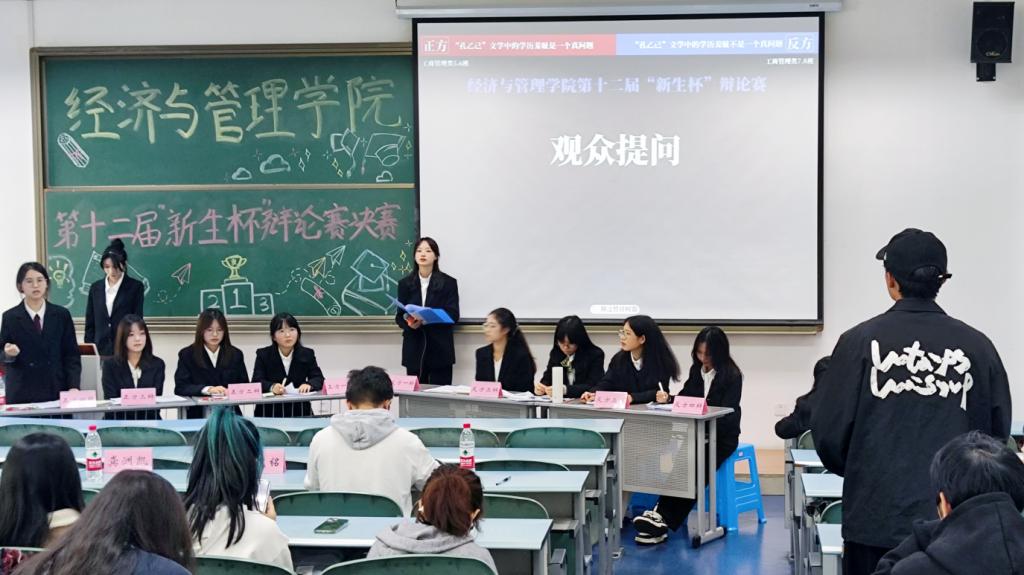 决赛现场,参赛选手以“孔乙己文学中的学历羞耻是否是一个真问题”为辩题展开了激烈的思辩,正反双方皆备战充足,运用精辟的措辞、犀利的言辞准确表达出各自对于解决“孔乙己”文学中的学历羞耻问题、“真问题”的实质等方面的观点,赛场上你来我往、互不相让,在一次次唇枪舌战的交锋之中敏锐捕捉对方的细枝末节,转守为攻。在自由辩论环节中,选手时而妙语连珠,诙谐幽默;时而慷慨激昂,掷地有声,充分展现出辩手强大的逻辑思维和语言表达能力,最终在评委们公正的评判下,第十二届“新生杯”以反方代表队的完美表现获得胜利告终,正方四辩获得最佳辩手。