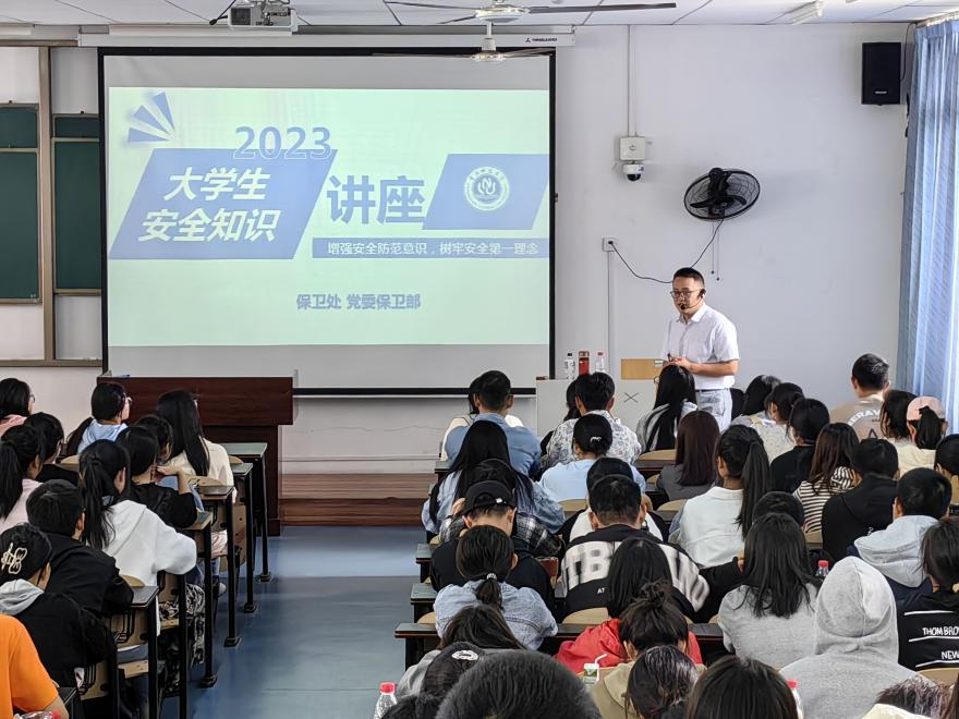 于特教楼T2302、T2402面向2023级新生举行大学生安全知识讲座,特邀张国建老师担任主讲。