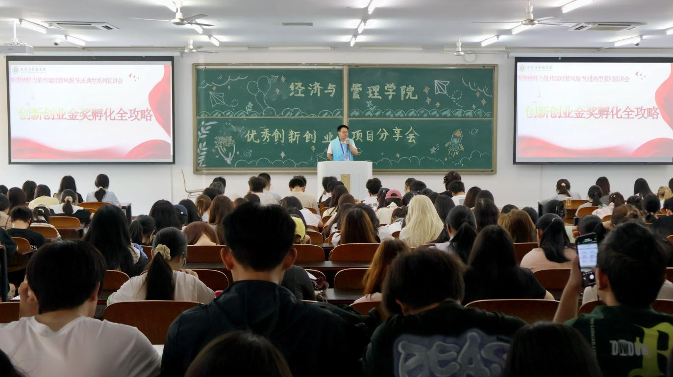 于励志楼T2507举办“凝聚榜样力量,传延经管风貌”先进典型系列宣讲会——创新创业金奖孵化全攻略。本次活动由院团委书记张莉主持,并邀请创新创业学院中国国际大学生创新大赛宣讲团成员周航、陈午阳与同学们分享创新创业经验与感悟,成人无码