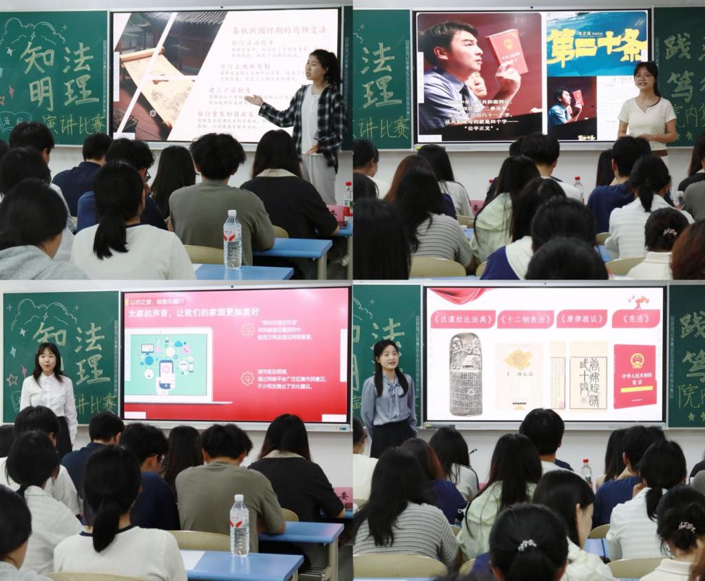 在弘德楼13103教室开展“知法明理 践法笃行”法治演讲比赛复赛。本次活动由工商管理系李增现博士及团委学生会骨干担任专业评审,并组织学生代表组成大众评审团参与评分。
