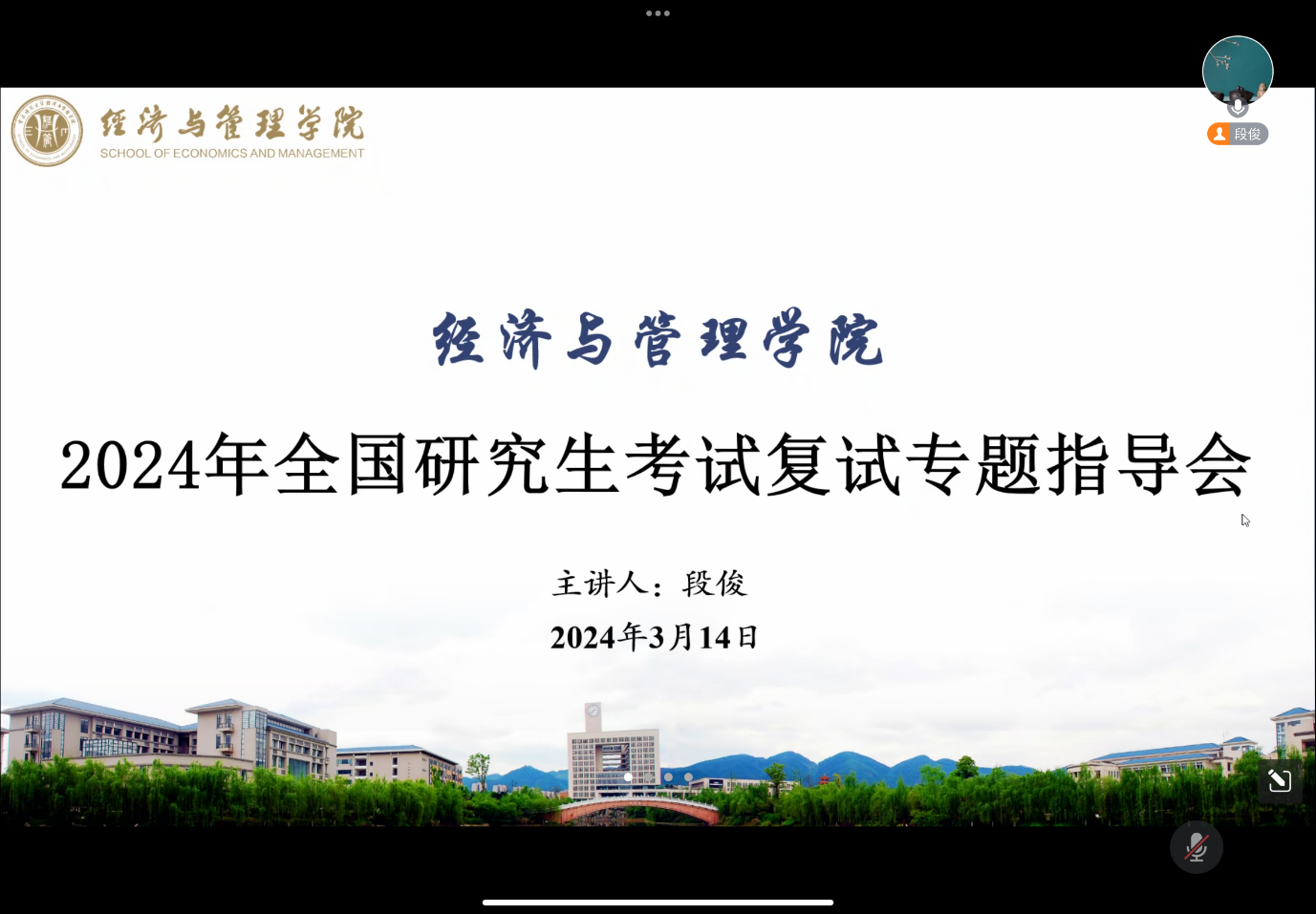 为扎实推进考研复试指导,帮助同学们掌握复试技巧,助力成人无码 学子在复试中取得优异成绩,2024年3月14日下午三点,成人无码 组织开展了2024年全国研究生考试复试专题线上指导会,会议邀请了成人无码 教授段俊担任主讲人作专题指导。