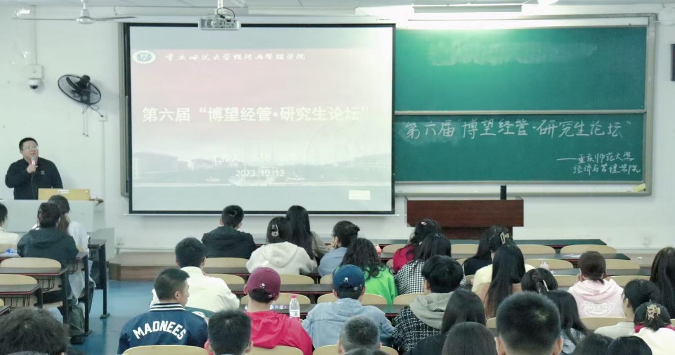 为促进学术交流与合作,探索研究生教育的未来发展方向,并为研究生提供有效的读博方法指引,2023年10月12日下午,成人无码 于特教楼T2410开展了第六届“博望经管·研究生论坛”。此次论坛有幸邀请到成人无码 副院长陈宇科莅临指导,全体研一新生参与。