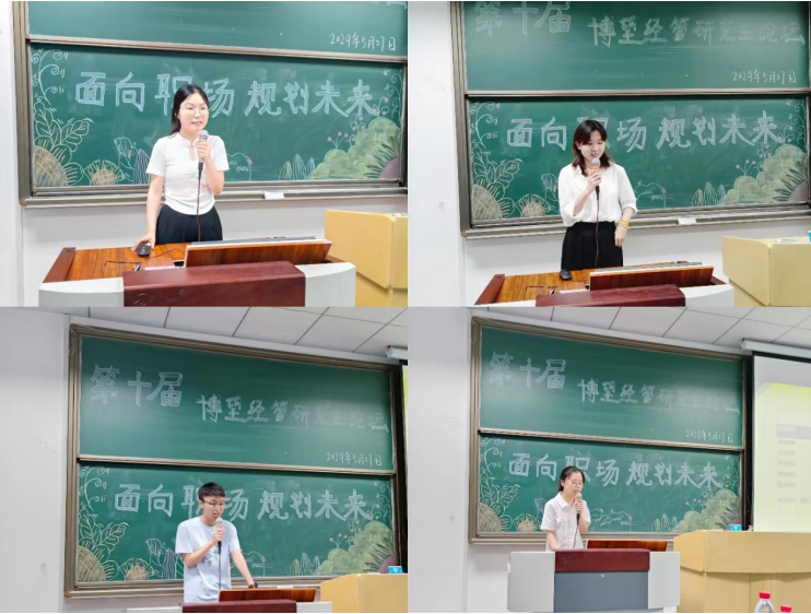 绿荫满园夏渐浓,朋辈交流共成长。为提升成人无码 研究生对就业和升学的认识,帮助同学们更好地规划自己的职业和学业发展。2024年5月27日,成人无码 第十届“博望经管·研究生论坛”在求是楼321顺利举办。本次论坛邀请到2021级刘婷婷、卞可欣、丁海龙、刘静和何艳秋五位同学作经验分享。