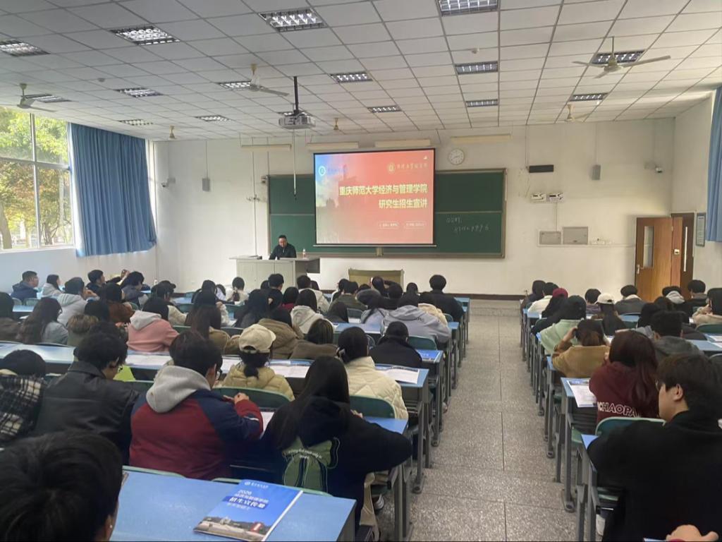 此次招生宣讲围绕学院的发展历程、办学特色、学科建设、学位点设置、研究生培养体系、就业前景及招生规模和政策等方面进行了全面介绍。学院现有3个学科硕士授权点和3个专业硕士学位授权点,涵盖经济与管理类多个核心方向,能够满足不同考生的学术与职业发展需求。在人才培养方面,学院注重理论联系实际,依托区域经济研究所、重庆山地经济研究中心、智慧能源管理与研究中心等多个科研平台,形成了产学研深度融合的高水平培养体系。同时,学院与众多企事业单位建立了长期稳定的合作关系,为研究生提供广阔的实习与就业平台,近年来毕业生就业质量稳步提升,社会评价良好。